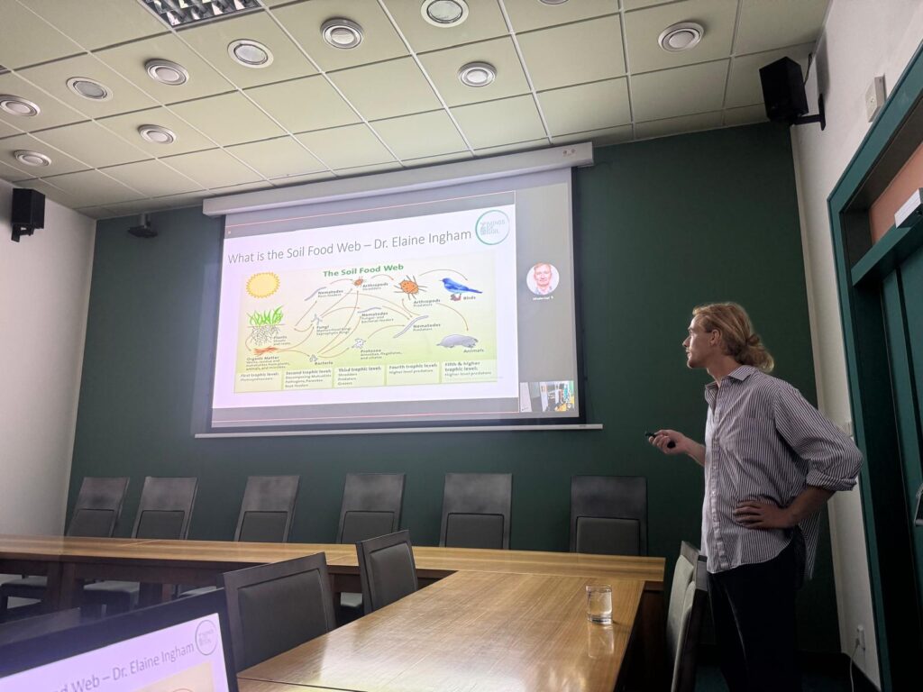 Philip prošel mnoha výcviky od permakultury přes syntropické zemědělství po Soil Food Web school, pomáhá farmářům napříč kontinenty s ozdravením půdy a produkcí vlastních biokompletních kompostů, výluhů a biolů.